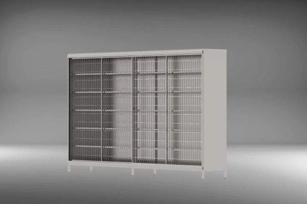 Стеллаж для хранения полностью изготовлен из нержавеющей стали AISI 304/AISI 304L, по спец. заказу возможно изготовление из стали AISI 316, AISI 321. Длина, ширина, количество стеллажных полок и вариант исполнения – варьируются исходя из индивидуальных пожеланий Заказчика.